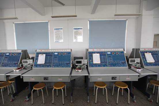 365娱乐游戏“应用电子技术”专业实训基地是2012年7月批准建设的中央财政支持的国家级职业教育实训基地,该基地在原有实验实训设施的基础上新增400万元专项建设资金,进行全面的升级改扩建。基地实训室分布于学校实训楼2、4、5楼,总建设面积2000多平米。设有数字电路实训室、模拟电子实训室、电路基础实训室、嵌入式实训室、光通信综合实训室、现代通信实训室、印制电路板实训室、电子创新实训室、单片机实训室、高频电子实训室、可编程序控制器实训室、电子综合实训室、船舶电力拖动实训室、综合布线实训室、计算机软件开发实训室、网络工程实训室、智能交通综合实训室等17个实验实训室。共有各类实验实训设备1000余台套,可完成电子专业群各专业主要实训项目,并能同时容纳600余名学生进行实验实训和技能考证。实训中心配有实训指导老师15人,其中高级职称7人,中级职称8人。